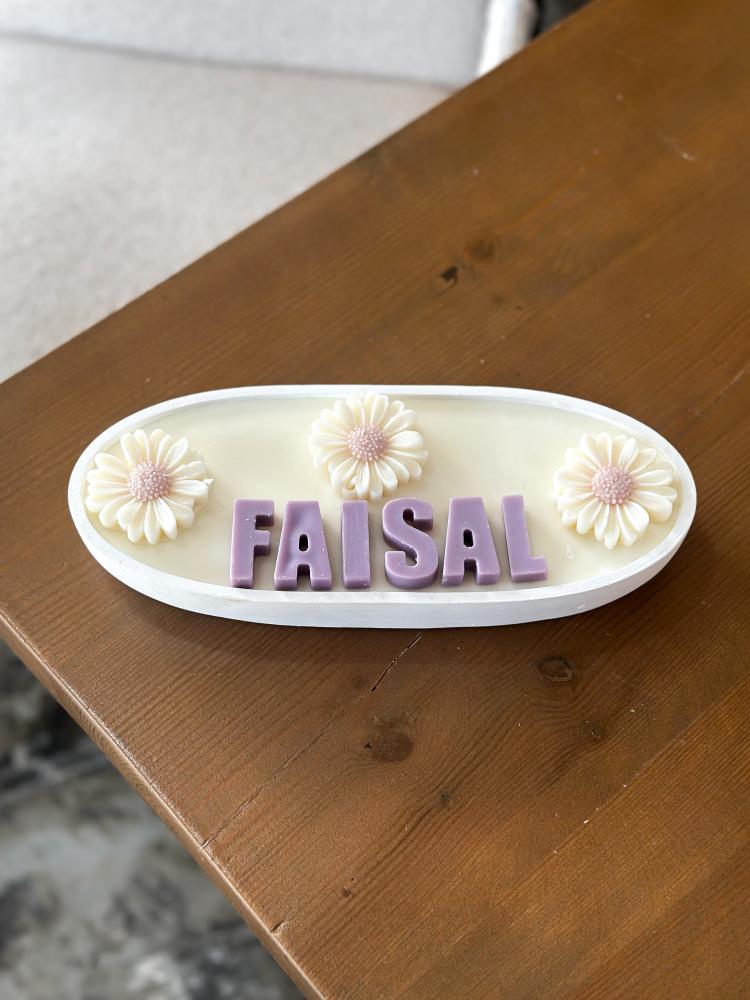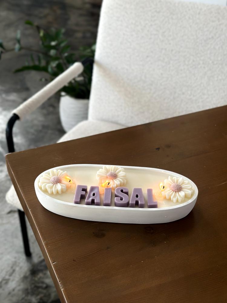 - اكتب بالخيارات الاسم المراد كتابته على الشمعة