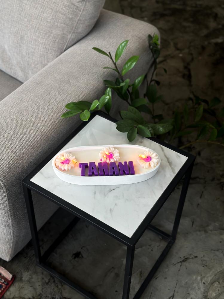 - اكتب بالخيارات الاسم المراد كتابته على الشمعة