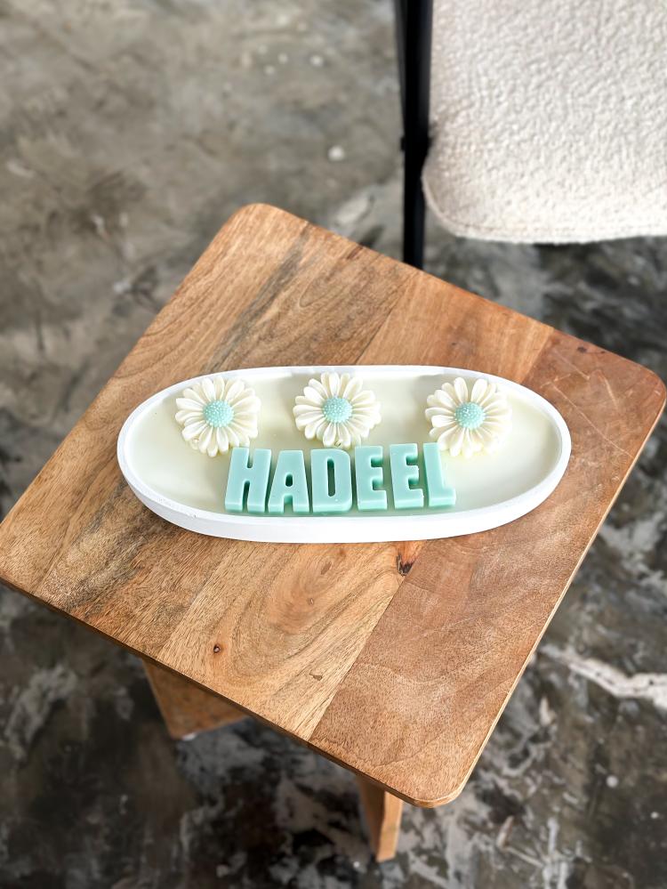 - اكتب بالخيارات الاسم المراد كتابته على الشمعة